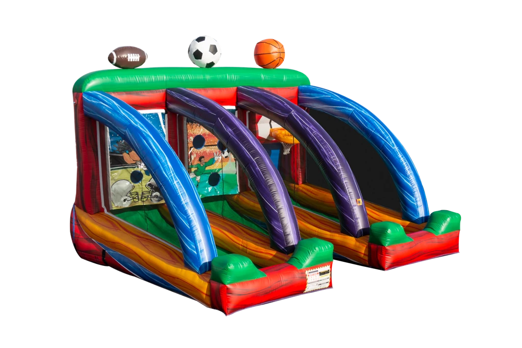 The 3 in 1 Sports Game 2.0 is the ultimate inflatable for adding a WOW factor to any event! Featuring football toss, basketball toss, and soccer ball kicking, it’s perfect for interactive fun. Dimensions: 16’x18’x13′.